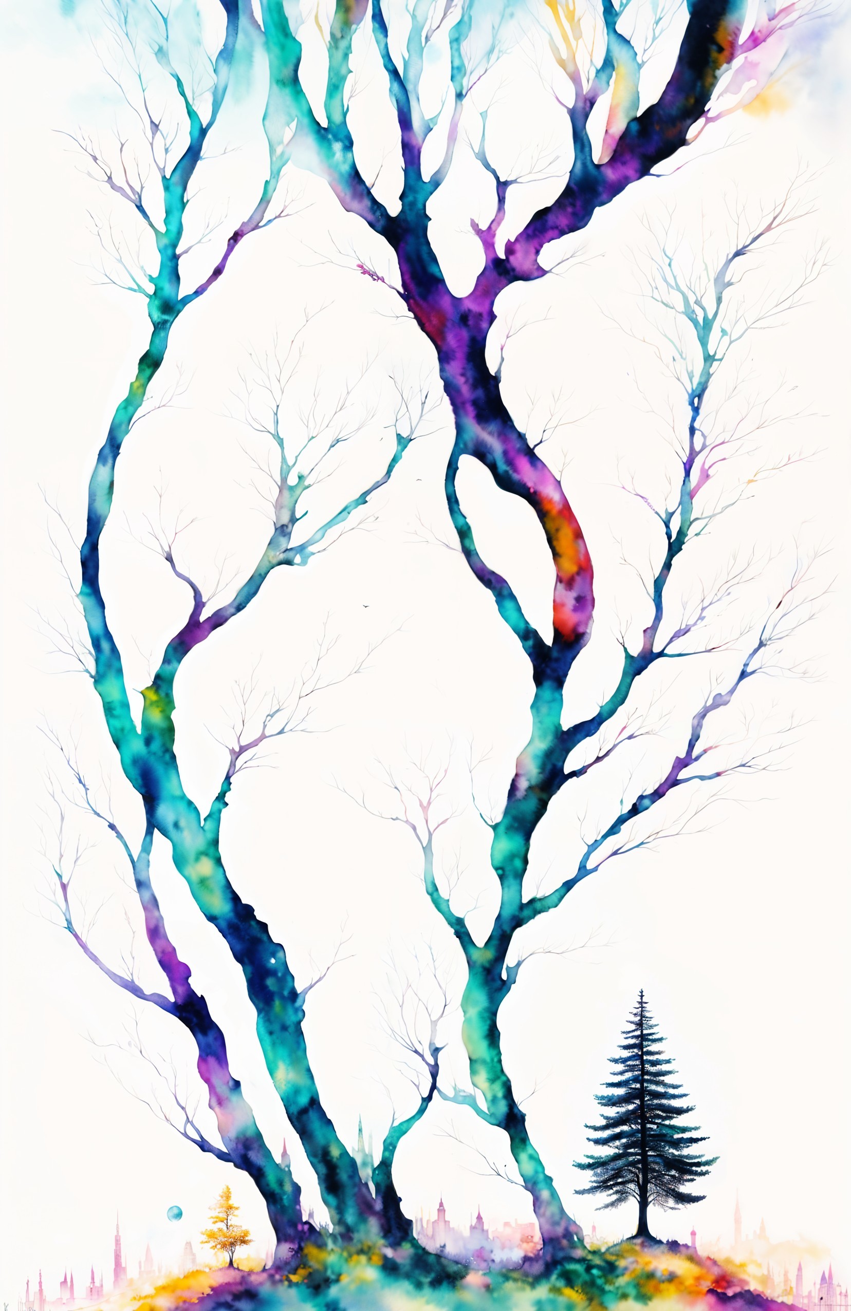 The image features a stylized tower surrounded by swirling, colorful streams of smoke and light. Intricate pipes intertwine, creating a dynamic and ethereal visual effect.