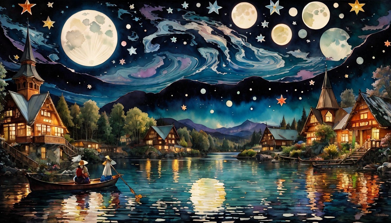 Serene Night Landscape with Moon Phases and Stars