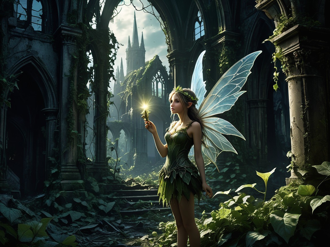 Lost Fairy in a Ruined Gothic City