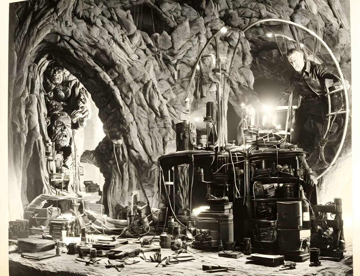 Dr. Frankenstein works on creating his monster man creation in his secret castle laboratory during a stupendous thunderstorm. Insanely detailed.