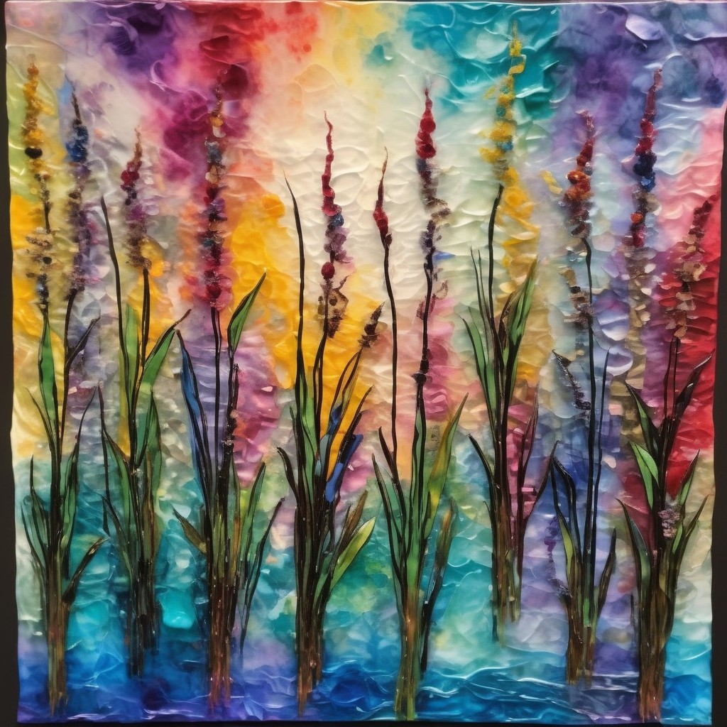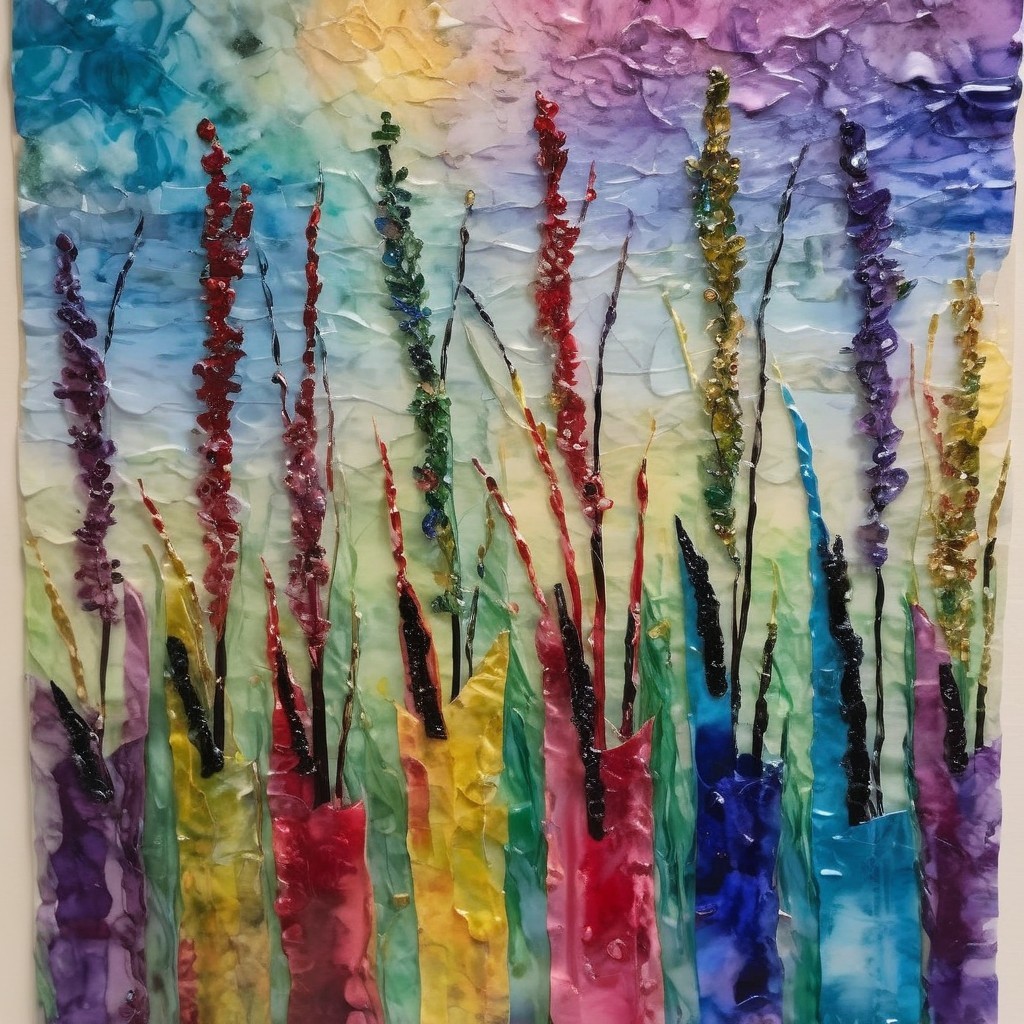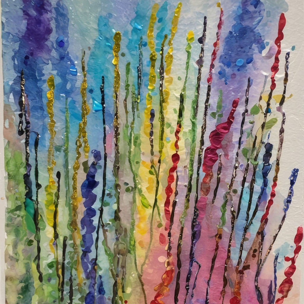 Prompt: string quartet on stage in a concert hall; tissue paper collage and alcohol ink with overpainted metallic highlights; coherent, balanced compon