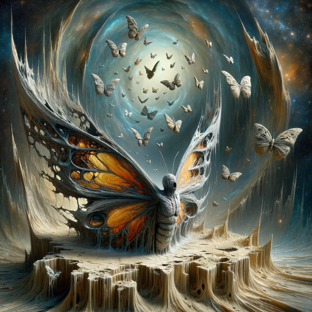 Surreal Scene with Butterfly Wing and Dreamlike Atmosphere