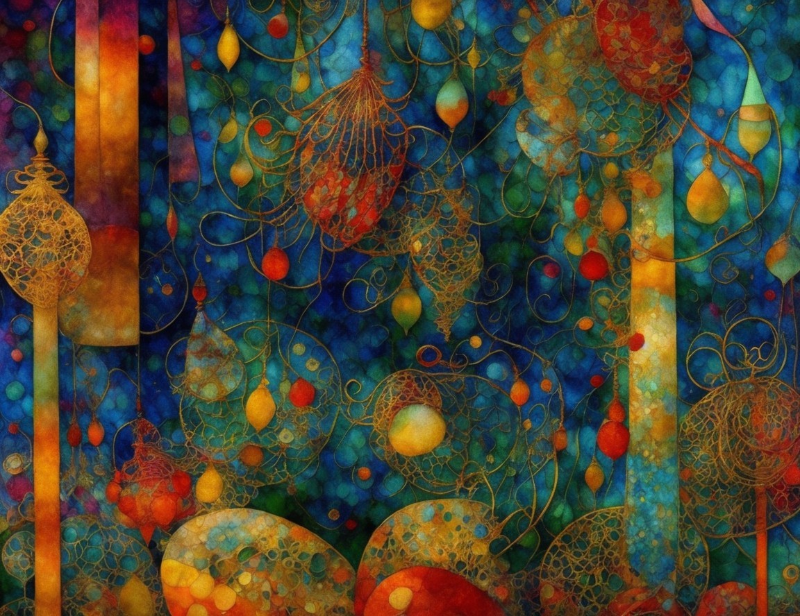 Colorful Mosaic Artwork with Circular Floral Motifs on Dark Background