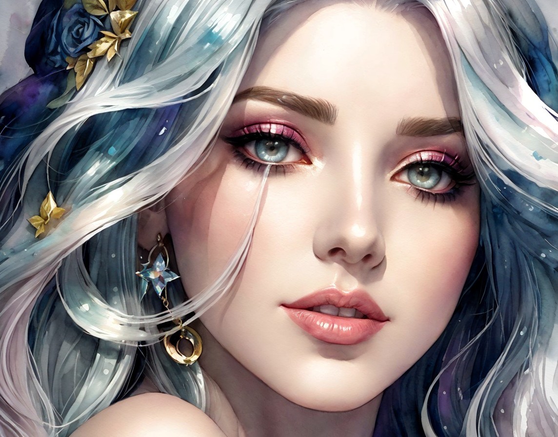 storybook illustration portraiture, Temptress portrayed in watercolor and ink, headshot, hues, stylized sketch art details, illustration on wavery background, quilling, quaint, cel-shaded, Mystical watercolor and ink masterpiece, stacked-up perspective, detailed colored ink drawing, withered pale colors, intricately detailed in American Gothic style, enhanced by dimmed dynamic lighting ,The piece incorporates a traumacore theme with a triadic color scheme of blue, grey, and beige in an 8:11 ratio, creating a mesmerizing inkpunk ambiance. The background is a dark blue, vivid illumination, intricate details reminiscent of 1970s advertising art by Overton Loyd, The abstract style exudes a dreamy atmosphere with cinematic wash, grain, and luminous plasticity, enhanced by 3D effects and delicate coloring. anisotropic filtering, shadow mapping in 1.3 ratio, vaporous lighting. The overall aesthetic is reminiscent of daguerreotype photography on old paper, blending elements of splash art, traumacore, and heartpunk. Tints of Stan lee and Steve hanks and Overton Loyd, stylized lineage illustration 1.5,octane render, inkpunk, melted colors, uhd, hdr, muted colors 0.7