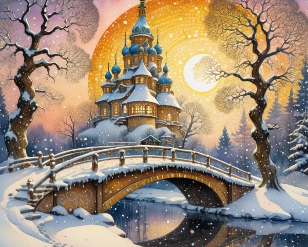 A serene sunrise over a misty lake with water lilies, reflecting pink hues in the tranquil water.