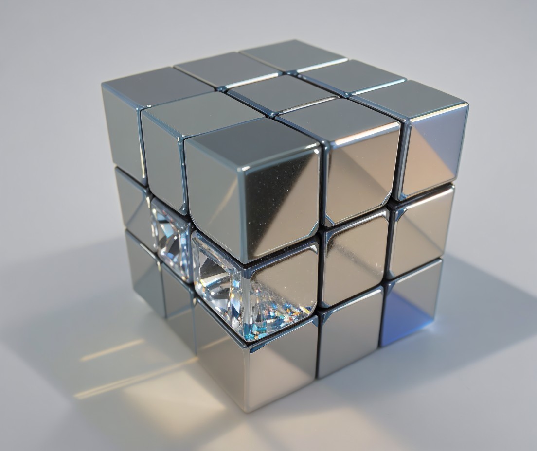 + Prompt:Perfect pristine 3x3 Rubik’s cube made entirely of gleaming polished sapphire. Extremely smooth, very sleek, flawlessly polished blue sapphire, studio photography setting, low-key lighting, accurate Rubik’s cube proportions, dark background, black background, magnificent iridescent light refraction index