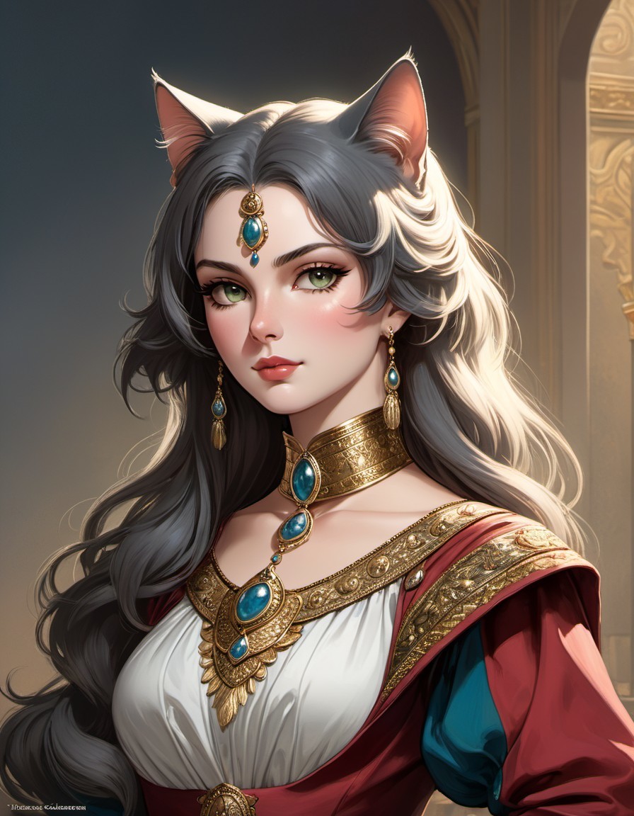 Prompt: "The feline conqueror, with its regal demeanor and piercing gaze, ruled over its domain with an air of authority. Full body portrait by Clyde Caldwell, by Thomas Rowlandson, photorealistic, masterpiece, exquisite craftsmanship, delicate detail, masterful, astonishing, perfect face, breathtaking, delicate, voluptuous"