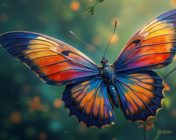 A fluffy gray rabbit sits amidst vibrant flowers in a colorful, dreamlike background. Soft pastels and bright hues create a whimsical, enchanting atmosphere.