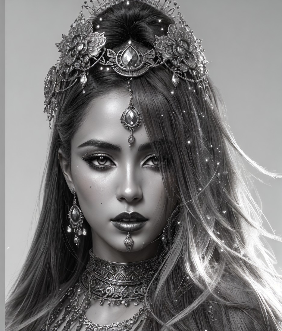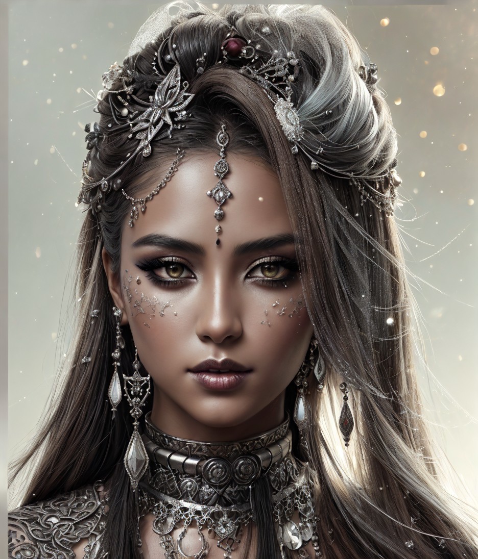 Detailed gothic elements, smooth dewy complexion, Other-worldly beauty & mystique