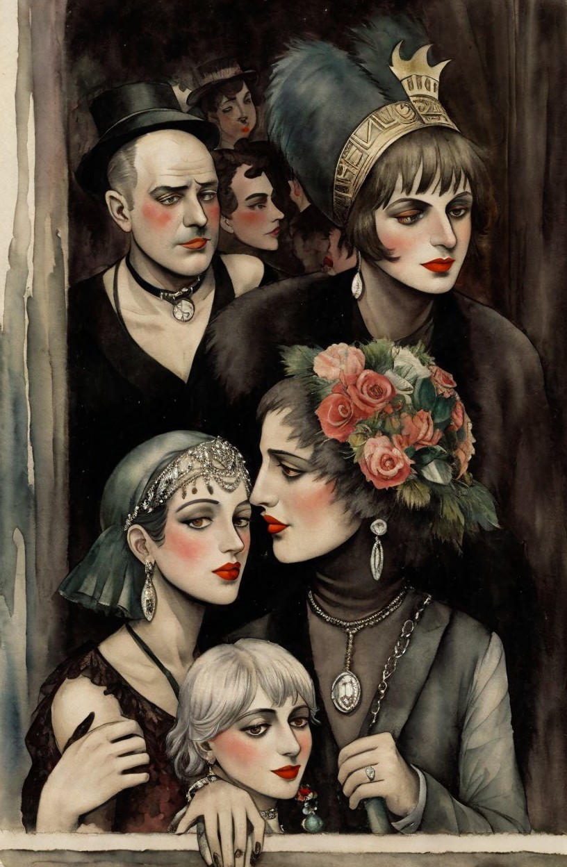 1920s Elegant Trio in Vintage Attire and Glamour