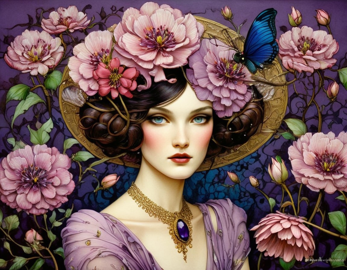 Woman in Vintage Dress with Floral Hat and Backdrop