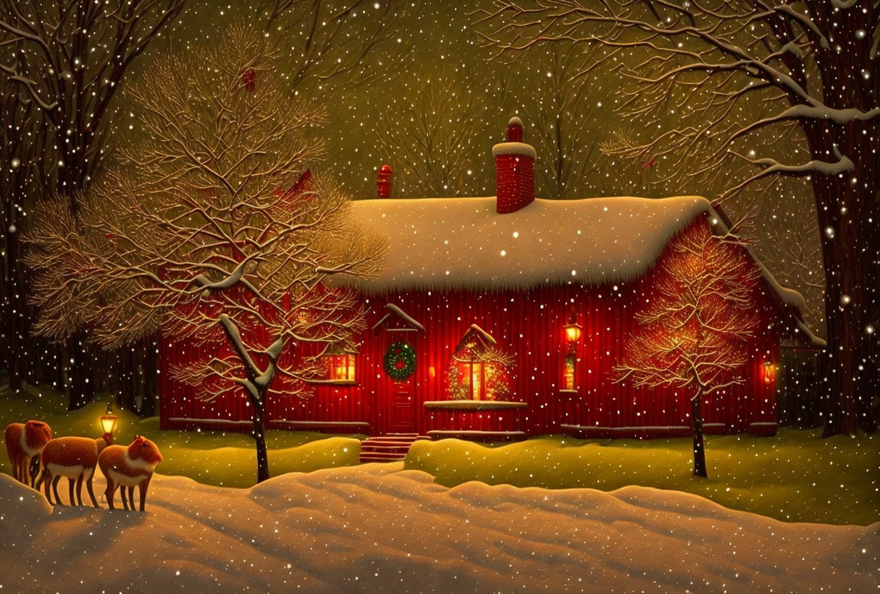 + Prompt:a winter decor in a small town populated by different types of animals, with lights, christmas tree, with many colors and snow, children storybook illustration, hand drawn, clean lines jane crowter style