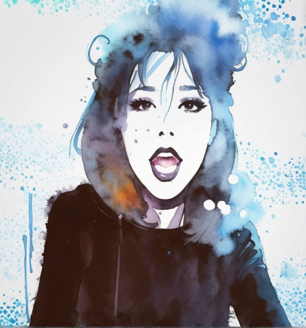 Prompt: A vibrant diverse mix of modern and historic styles, micropen strokes and splashes, vivid aquarelle colors, textured squiggly lines, flecks and ink splatters. Close-up, headshot, opaque. Dynamic lighting. Washed-out clouds in watercolor, sketchy lines, rich textures, warm coloring, dof, debeh, bokeh, stippled, tesselated, blotting, squiggly line-art, intricate details, dramatic lighting contrasts, inspired by the styles of Devin Allen, Jacques de Loustal, Gabriel Pacheco, Isabelle Arsenault, Man Ray, hues by Overton Loyd and Georges Seurat, UHD, iridescent spectral effects, gorgeous, rim lighting, ethereal and otherworldly ambiance, inkpunk influences, subtle luminism, watercolor overspray technique, exaggerated features, flowing hair illusion, layers of fabric blending with turbulent clouds, dynamic lighting effects, ambient occlusion, ethereal atmosphere, liminal and luminous, plasticity, wavery texture patchwork, traumacore elements, grunge aesthetic, fusion art concept, precise Gelsculpt 64K resolution, golden ratio composition, beautifully evocative and sumptuous, aesthetic and unique, hues by Overton Loyd and Brad Kunkle, lighting by Ed Paschke with a cartoon style executed in ultra-high quality. The hues are rich and vibrant, curated by Arlie Opal and Helen Frankenthaler, incorporating a wavery coloring effect. Enchanting watercolor fantasy, ethereal and vibrant, influenced by Carne Griffiths, Paul Klee, and Ho Baron, intricate pen and ink details, depth and motion, silhouettes, glowing, uplifting mood, excitement, digital illustration,stylized, stippled look with tesselated patterns, warm tones, and a complex interplay of light and shadow, diffused light, warm tones, raytraced shadows 1.6, smeary feel, stylized rewildered essence. Embrace the intricate details of line-art, with lineage reminiscent of Susan Seddon Boulet, high coloring in pastel tones, reminiscent of orphism, stippled, squiggly lines for an rousing touch. wavery textures and coloring