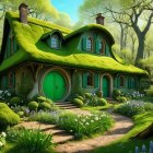 Surreal Landscape with Black House and Mysterious Figures