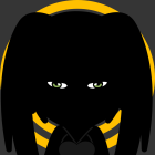 A stylized black silhouette of a creature with long, flowing hair and piercing yellow eyes, crouching low with its claws visible against a dark background. The graphic has a bold, minimalist design.
