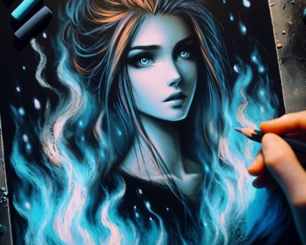 A young woman sits curled up in a dark space, wearing a white dress. Her face is marked with striking red paint, and a single candle flickers nearby, casting a somber light on her posture.