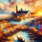 A fashionable figure stands in a rain-soaked, neon-lit city, holding an umbrella. Her colorful hair contrasts with the vibrant lights and dramatic reflections in the wet streets.