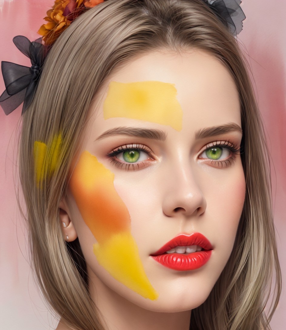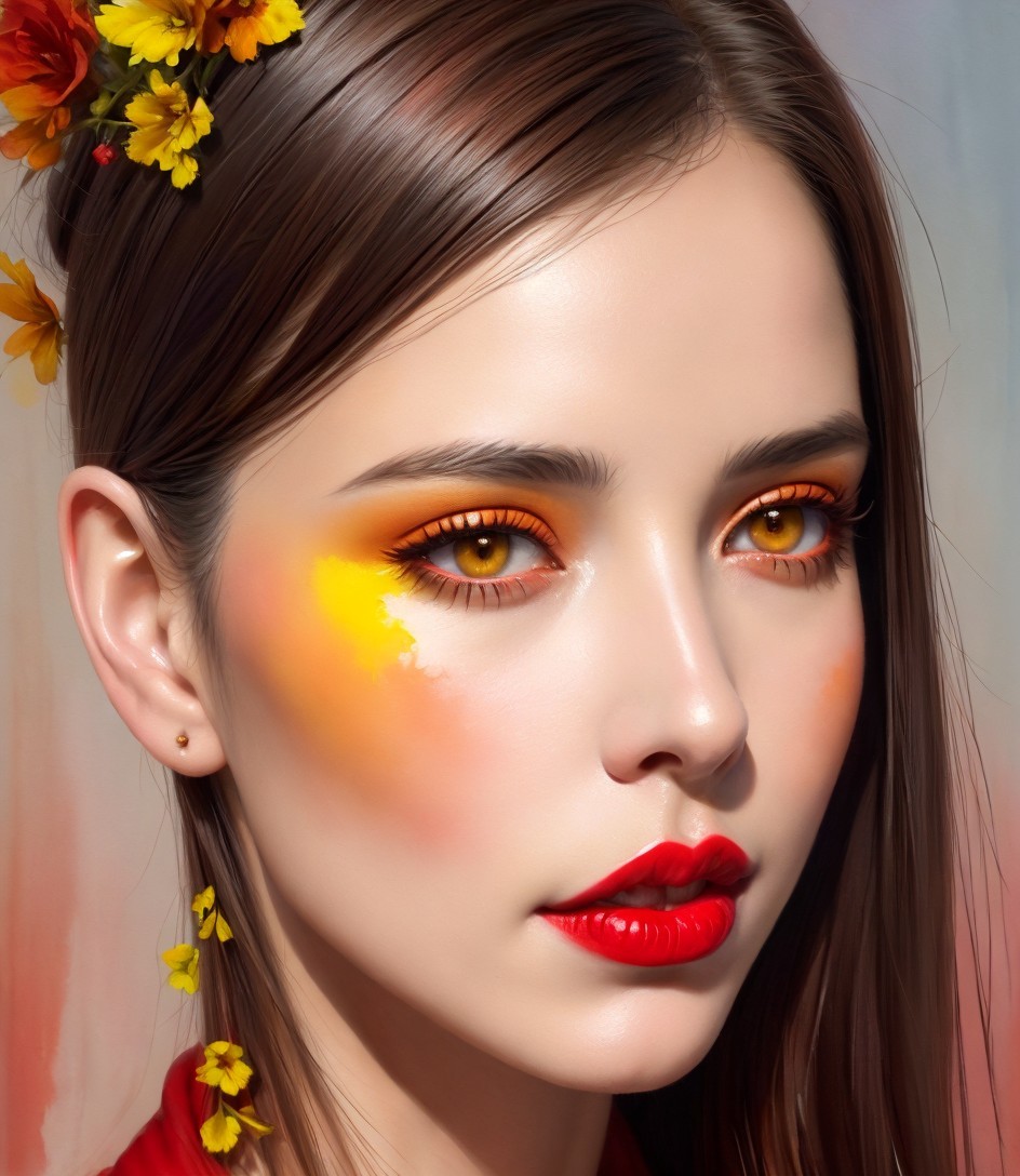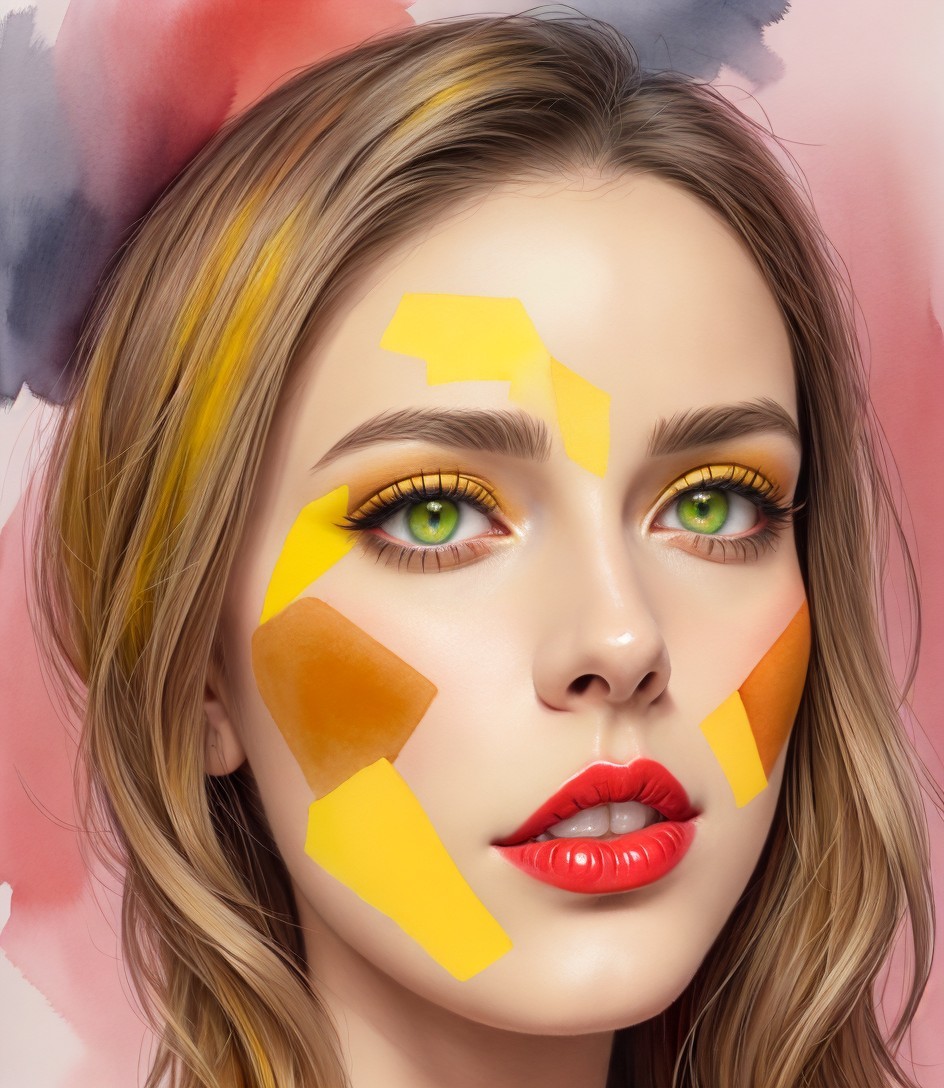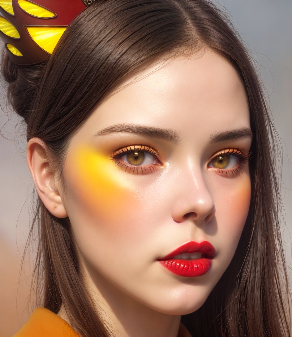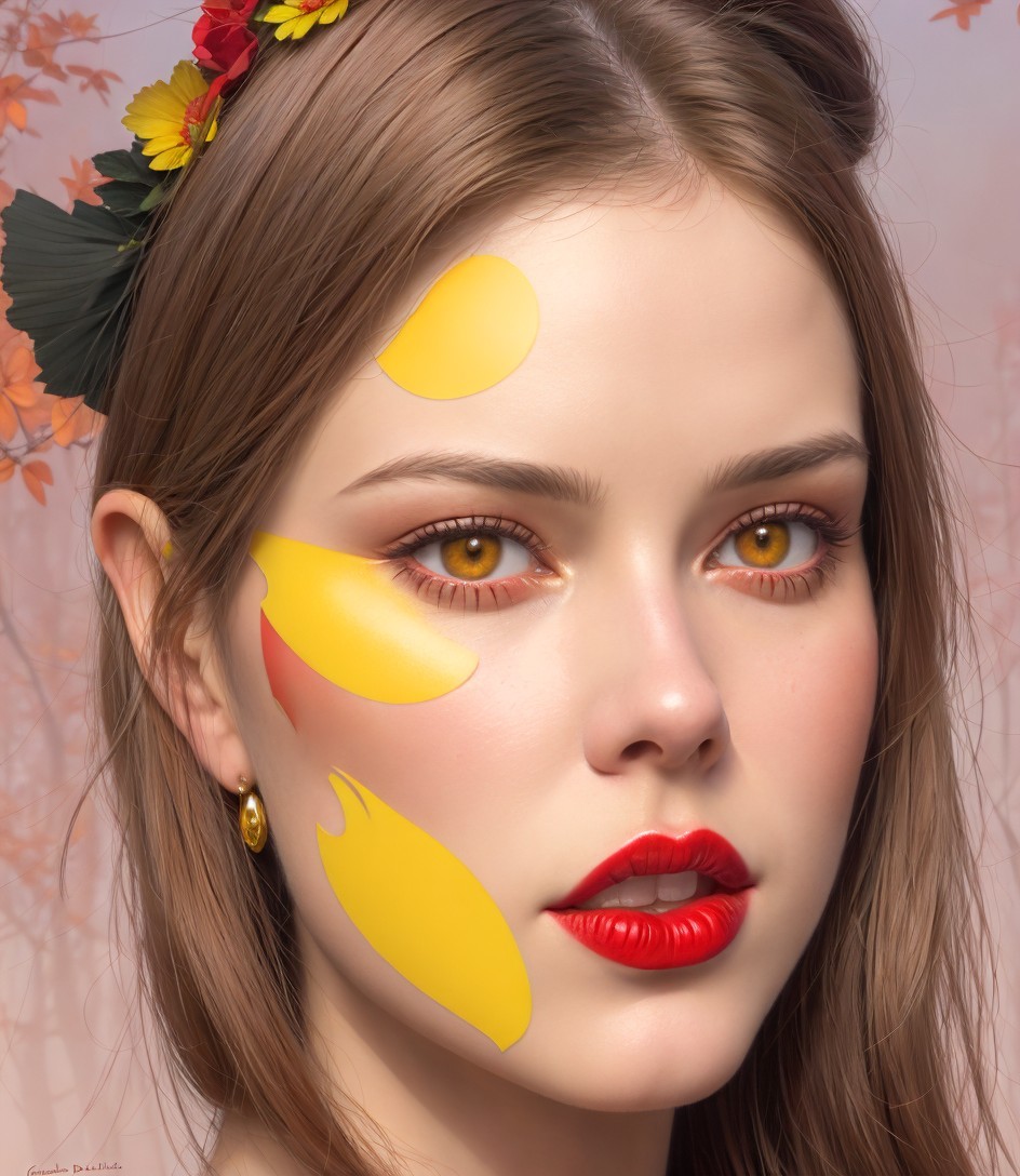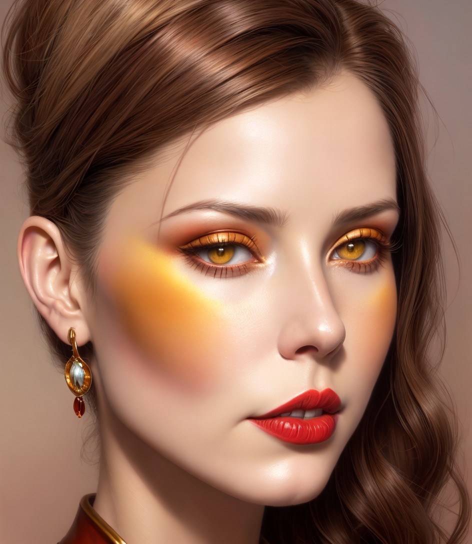 Handsome french girly with detailed red lips, triadic color scheme yellow ochre amber, headshot portrait with stacked-up perspective, colored ink drawing with charcoal textures, charming, custom_loss: edge, american gothic 1.7, dimmed dynamic lighting, art nouveau, (traumacore (triadic color scheme yellow, ochre, burgundy) 7:11), perfect handsface, Watercolor details, moving pose, (dark beige background vivid illumination, intricate surrounding), style of 1970s advertising art) 9:11), detailed plasticity, dreamscape, instaport style, grain, luminous plasticity, 3d effects,delicate coloring, octane render, luminous plasticity, anisotropic filtering, shadow mapping 1.3, volumetric lighting, traumacore, dreamscape, quaint, folded paper style 1.6, high coloring, plasticity 1.9, ambient occlusion 1.5, beautiful composition, edge_color:brown, edge_thickness:0.6, brightness 1.4, zentangle lines intertwined with hairdo, cottagegore 1.9, deep colors, tints of Dee Nickerson, comic style art on a cracked paper , fantasy, close up, filigree ,silhouette macro portrait, dynamic pose, light on face, shadow play, perfect face, sharp glowing eyes,style by Overton Loyd, by Damian Lechoszest, by Todd Lockwood, storybook illustration by Adrienne Segur, highly detailed unusual beautiful details, intricated, intricated pose, tiny details, masterpiece, crisp quality, intricated lighting, luminism, plasticity 1.6, complexion 1.4, radiance, maximalism, biomorphic shapes