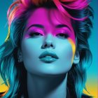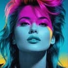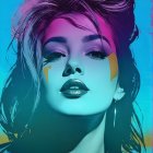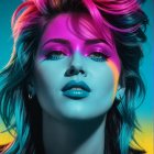 Headshot, female in bold grey-black outlines, mullet, coarse lighting, dyed, saturated midtones (deep blue, teal, warm ochres and magenta gradients); displacement mapping, phong shading, cheeky, impertinent, flippant and flashy warm undertones, reflecting high-contrast highlights, tousled hairdo,1980s advertising art, brightness 1.4, dyed, funky, open-minded, respected, coherent linework. Displacement mapping 1.3, mip-mapping 1.1, parallax occlusion 1.3, polished, grain, hues by Ho Baron, quilling, airy, complex airbrush textures, HDRlayered fields of scraped paint, sgraffito lines, stencil style, scratched patterns, etching textures, impasto linework, fine scratching to reveal underlayers; great scale depth, diffused frontal lighting, revealing layered surface, optional warm coloring, very centered abstraction, radiance, quilling, unity, natural, mystical, hand-drawn illustration style, opalescent color shapes, translucent details, back-lit, abstract post-avantgarde by Stan Lee, dof, bokeh, debeh, negative lucas numbers, warm gradient inking colors, fragmented surrealism elements, surreal juxtaposition, magical and enchanting atmosphere, alluring and fantastic elements, vibrant colors, whimsical, floating islands, cascading intricate patterns, hidden liminal details, mysterious fantasy, high resolution, dynamic lighting creating a mystical ambiance. angled view, fine neon linework, high-resolution digital art, focus on texture and contrast, sleek and modern style, dynamic lighting to enhance the depth and dimension of the artwork. Synthwave reference, geometrical motif, double-exposure effect, liminal, warm coloring, multi-layered, action painting in great depth and scale, tall and lean details, pointilism reference, fractal theme, triadic color scheme metallic-honey deep-grenn light-magenta, texture mapping 1.3, phong shading 1.2, ambient occlusion 1.3, vibrant line-art by William Bradley, hues by Ho Baron and Ed Emshwiller, dappled rim lighting, smeary, surreal aesthetics by David Graeme Baker, interwoven textures, voluminous collagraphy print, reminiscent of coloring by Gerald Brom. 128K HDR, avant-garde artwork, strikingly colorful, brightness 1.7, zentangle, plasticity 1.1, emulsion shifts, dyed, trippy,high coloring, (Man Ray's geometrical intricate linework, (detailed background: (swirls, cymatics, catenaries, organic forms, asymmetrical micro-pen lineage, line-art), 8:11), push processing technique, post-avantgarde style, fine-line illustration, natural color gradient inking), raytraced shadows, 3D effects, plasticity 1.3, subsurface scattering 1.6, color glitch theme, Ho Baron inspired, overflowing with visual density, trippy, warm-toned, very colorful, large-scale complexity, angled, colorful and detailed,unique, warm coloring with ink lines over watercolor effects, tesselated, stylized, watercoloring techniques,