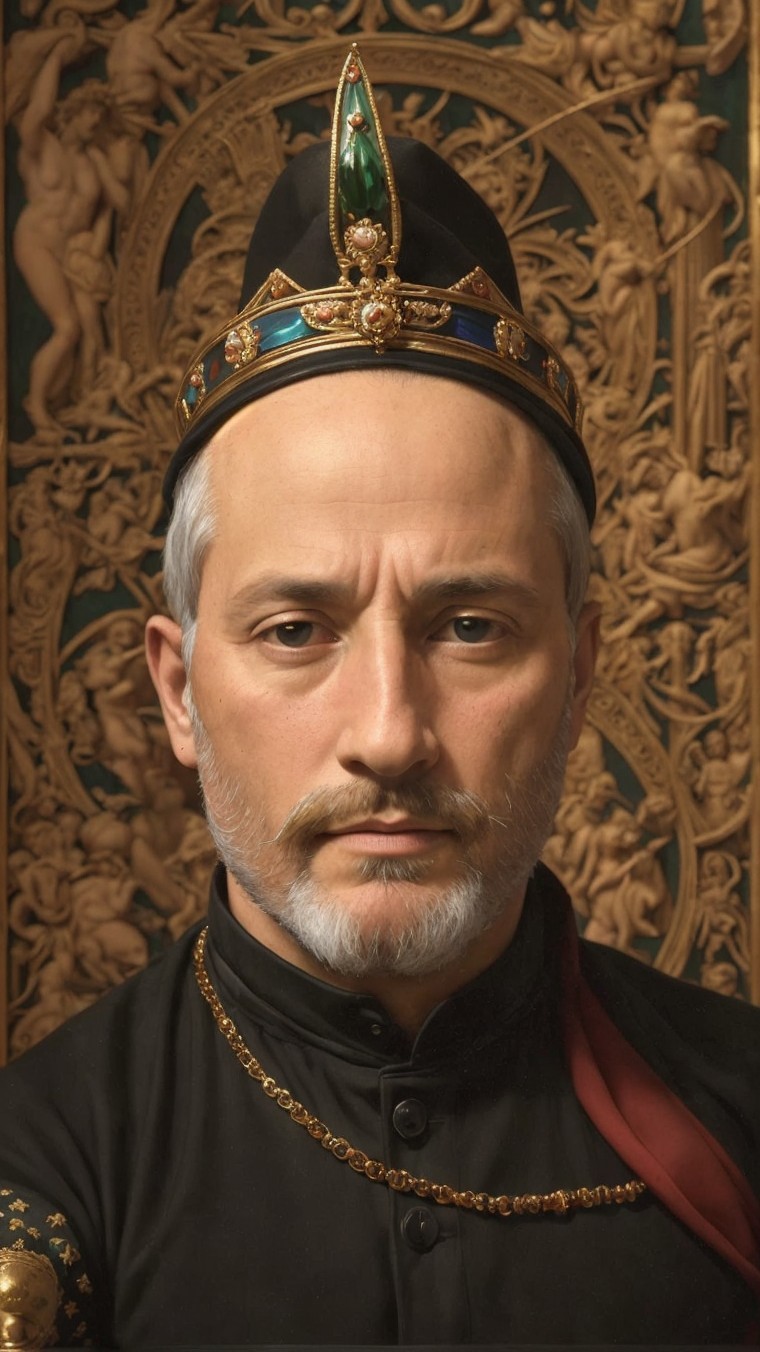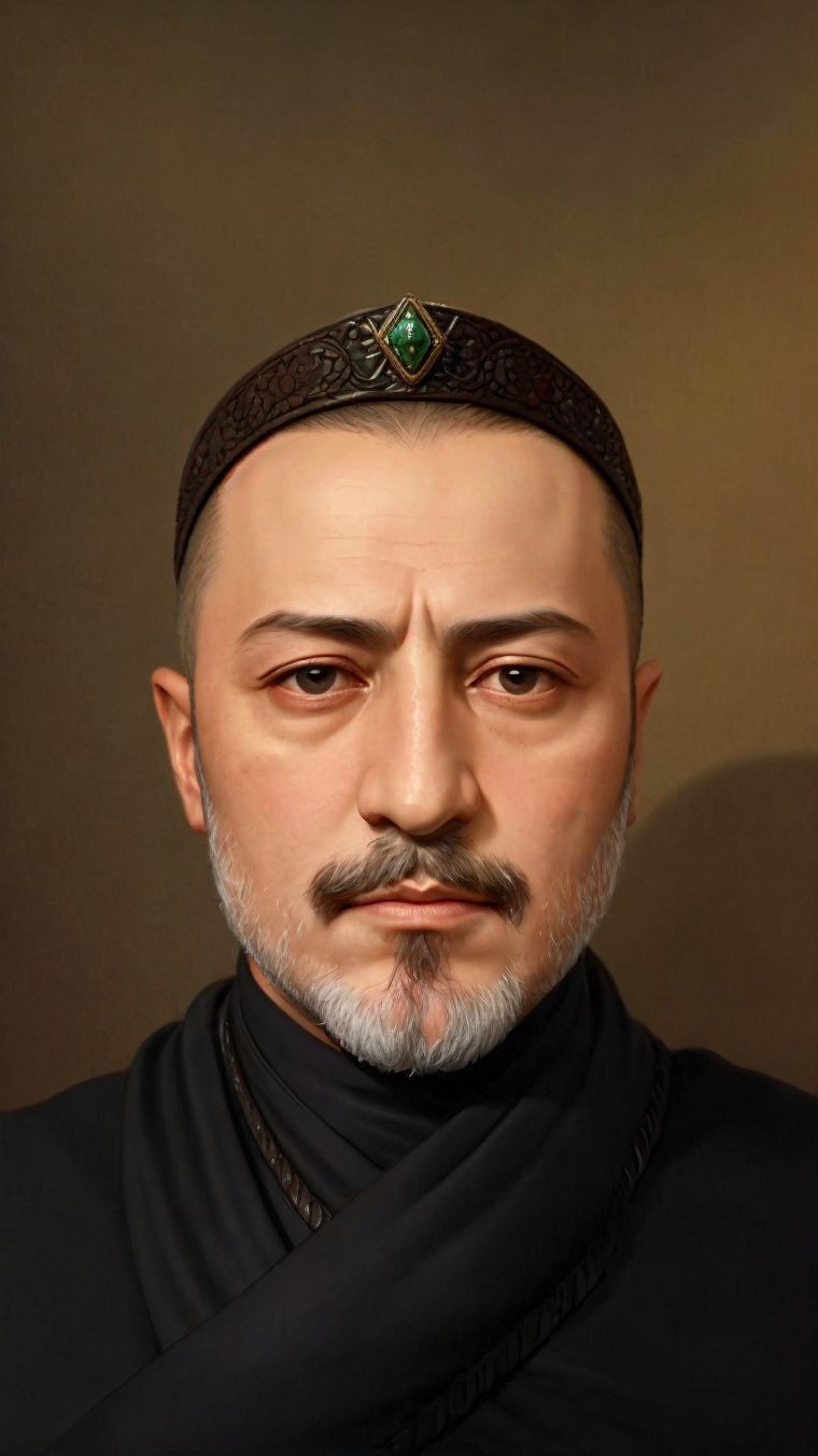 A Young Ottoman Sultan who just got crowned and is now ready to conquer the world. He is looking serious, since he understands his responsibility to make the lifes of all his people a succes and grant them peace and stability, yet also make the realm great for his bloodline.
