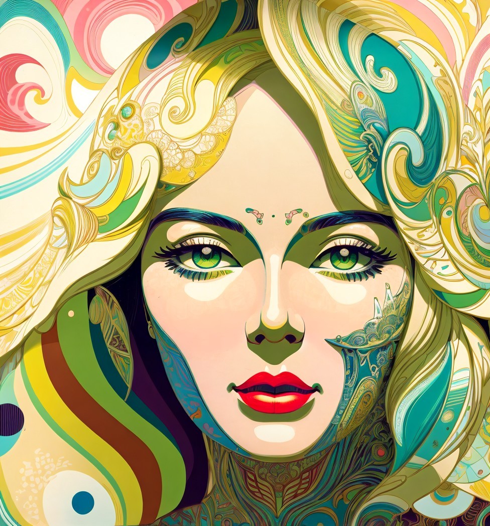 Woodblock print, Close up, full upper perspective, stacked lines, (colorful triadic color scheme green beige blue, magical realism), creamy illustrative cuts, 7:5) 1950s advertising art, space age, kinetic dripping art, printed illustration, tints of sketch art, (intricate details, (ornamental crochets, beads, pearls,) radiance 7:5),  plasticity,  luminous print, intricate zentangle ornaments,