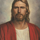 The image features a portrait of Jesus Christ, in the style of Del Parsons. Image is based on his classic, commissioned oil painting of Jesus Christ. The print is available here for $2.50 -- https://store.churchofjesuschrist.org/the-lord-jesus-christ/5638695448.p?style=English&color=16+X+20+in.+%2840.6+X+50.8+cm%29