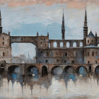 A whimsical, dreamy landscape features two black cats atop a floating city with spires. The background showcases a blue moon and bright stars, creating a magical, surreal atmosphere.