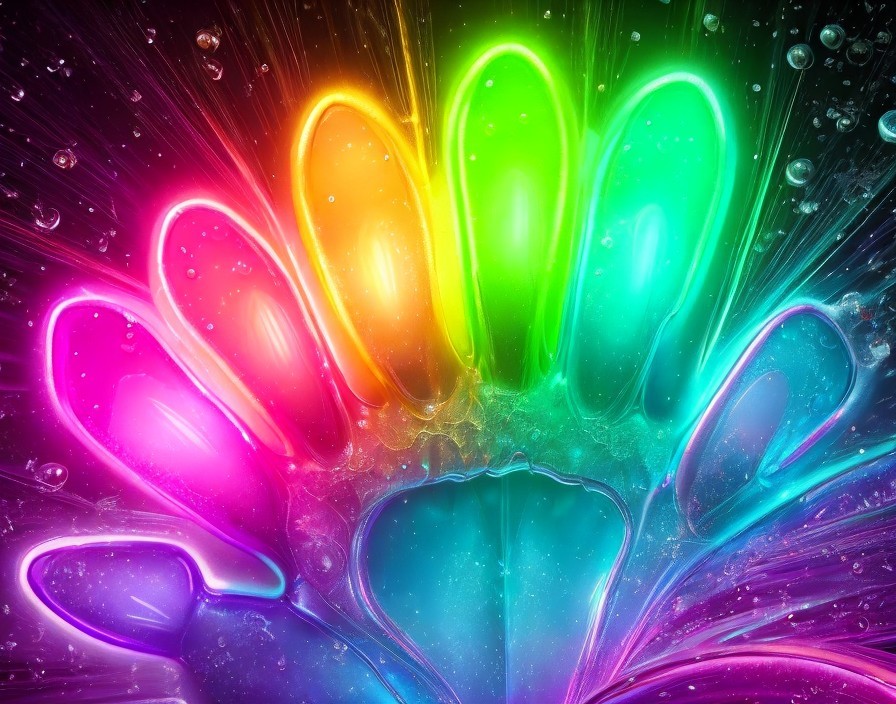 Colorful Domestic Cat Against Peacock Feather-Like Backdrop