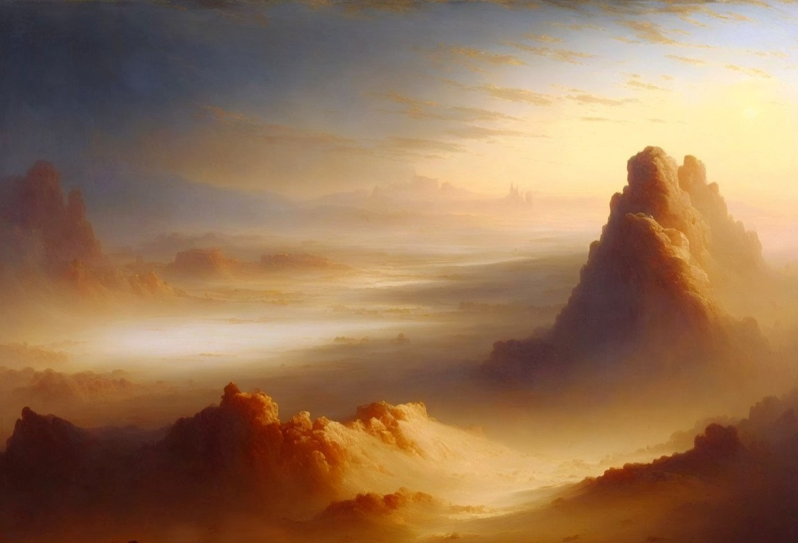 Rugged Rock Formations in Warm Desert Sunrise
