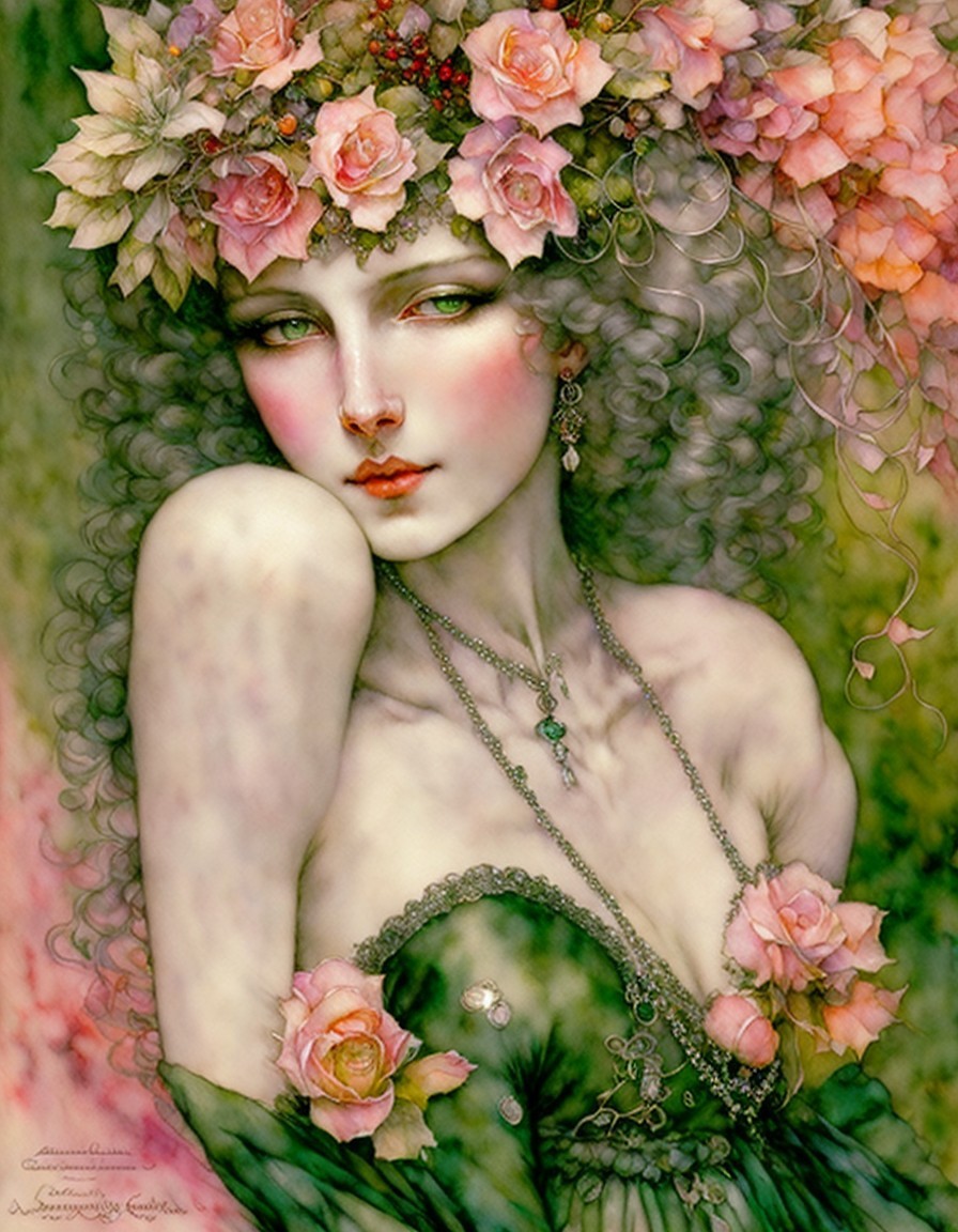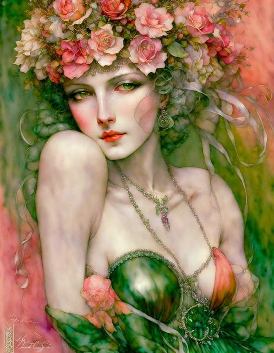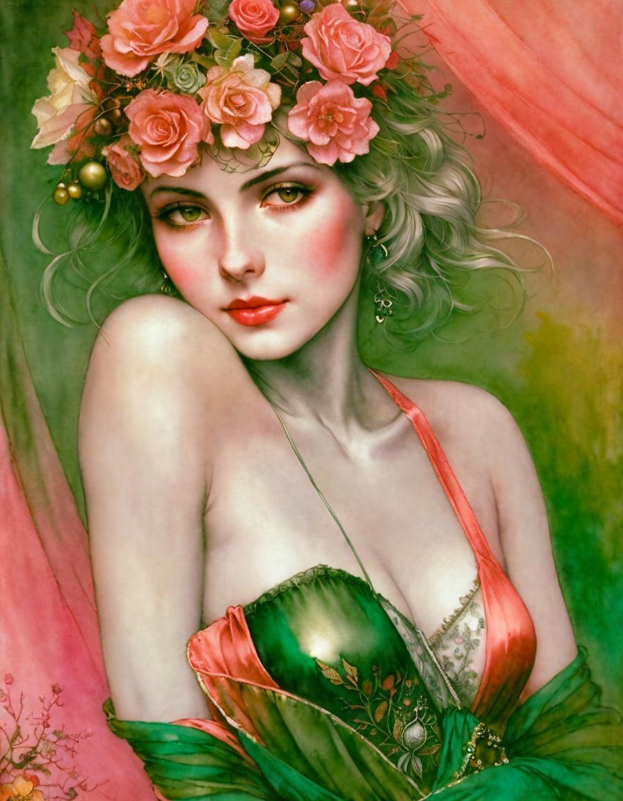 + Prompt:watercolor delicate sobriety fine lines in shades of gray and green watercolor and ink by Anton Mauve and Enki Bilal Beautiful queen of the holidays. Lights and ribbons. No hands
