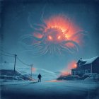 Lone Figure Approaches Cosmic Horror in Winter Landscape