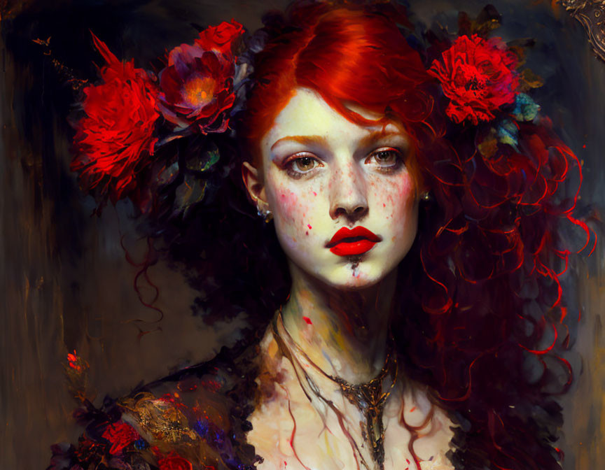 Painted portrait of a gorgeous woman with red hair. Base image made by me in DDG. The prompt will stand alone but works well with a base image. I don't remember where I got it or how much I adapted it, sorry. Hit "try it". :)