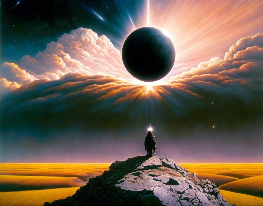 Prompt: "master of reality burning heavy metal blending through the sky so vast, escape from alternative brainwashed rock minds past the stars in fields of ancient eternal spiritually focused void"
