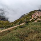 Scenic Hiking Trail Amidst Mountains and Lush Flora