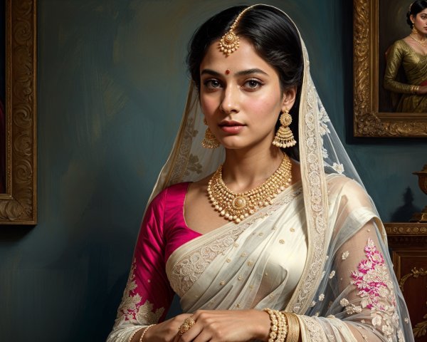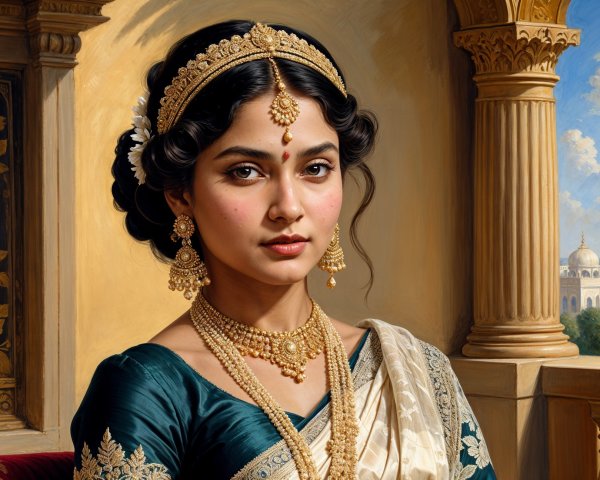 Elaborate headgear fantasy portrait with cosmic backdrop