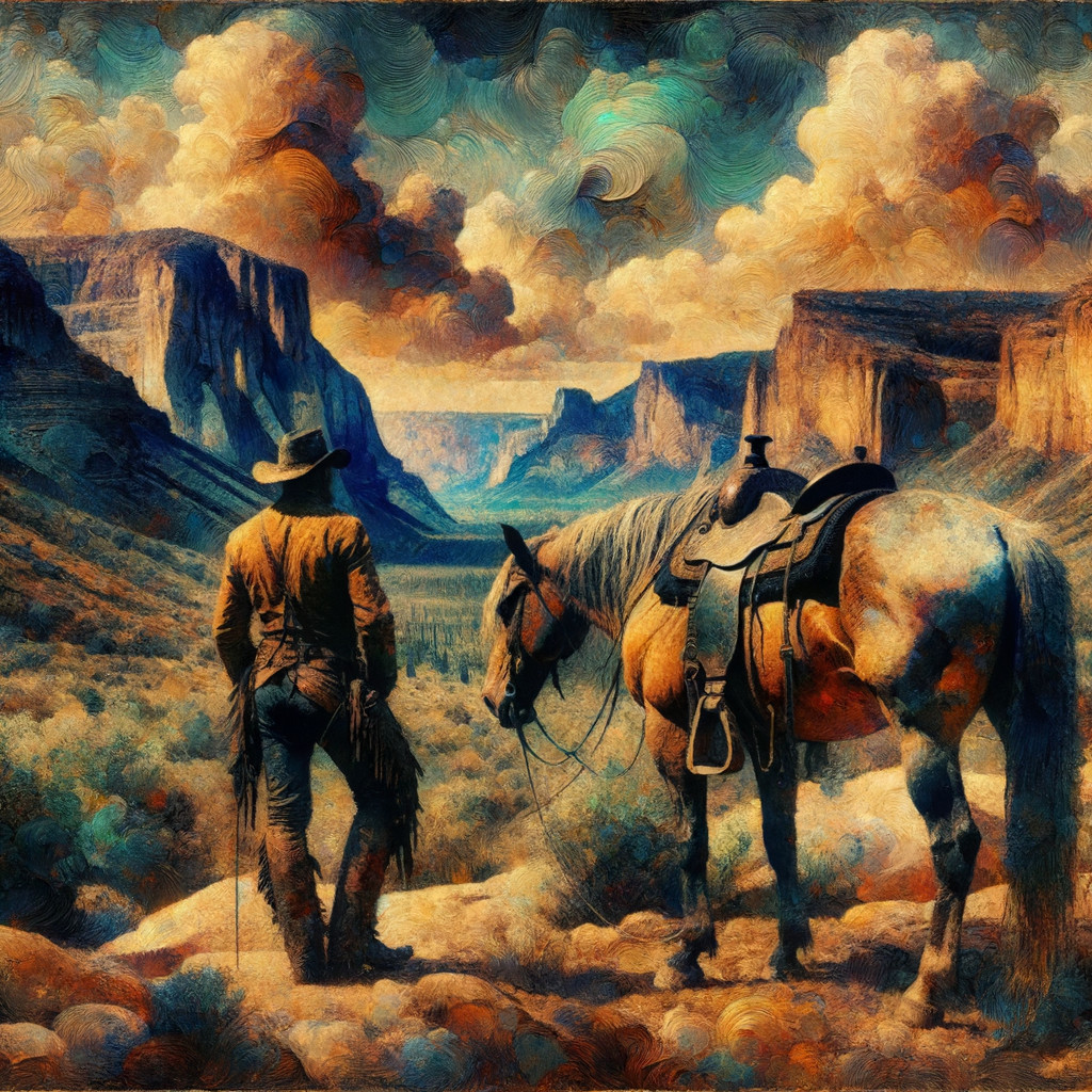 Started with AIVision, evolved with ArtFusion @40%, some inpainting to remove fringe that the AI insisted cowboys wear.