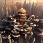 A mesmerizing futuristic cityscape with towering structures and floating orbs, illuminated by ethereal light. Winding pathways connect intricate designs, evoking a sense of wonder and surreal beauty.