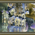 Vintage-Inspired Artwork with Elegant Figures and Cityscape