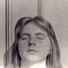 A serene portrait of a woman with flowing hair and closed eyes, exuding tranquility. Soft, blurred backgrounds enhance the dreamlike atmosphere, creating a sense of peace and introspection.
