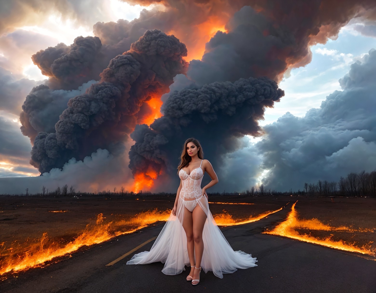 This was supposed to be a gorgeous young woman wearing lingerie and standing in front of a tornado made of fire, a Firenado.  I wanted to try this one again, since my previous version didn't have a very pretty face, although I liked the Firenado better in my previous one.
