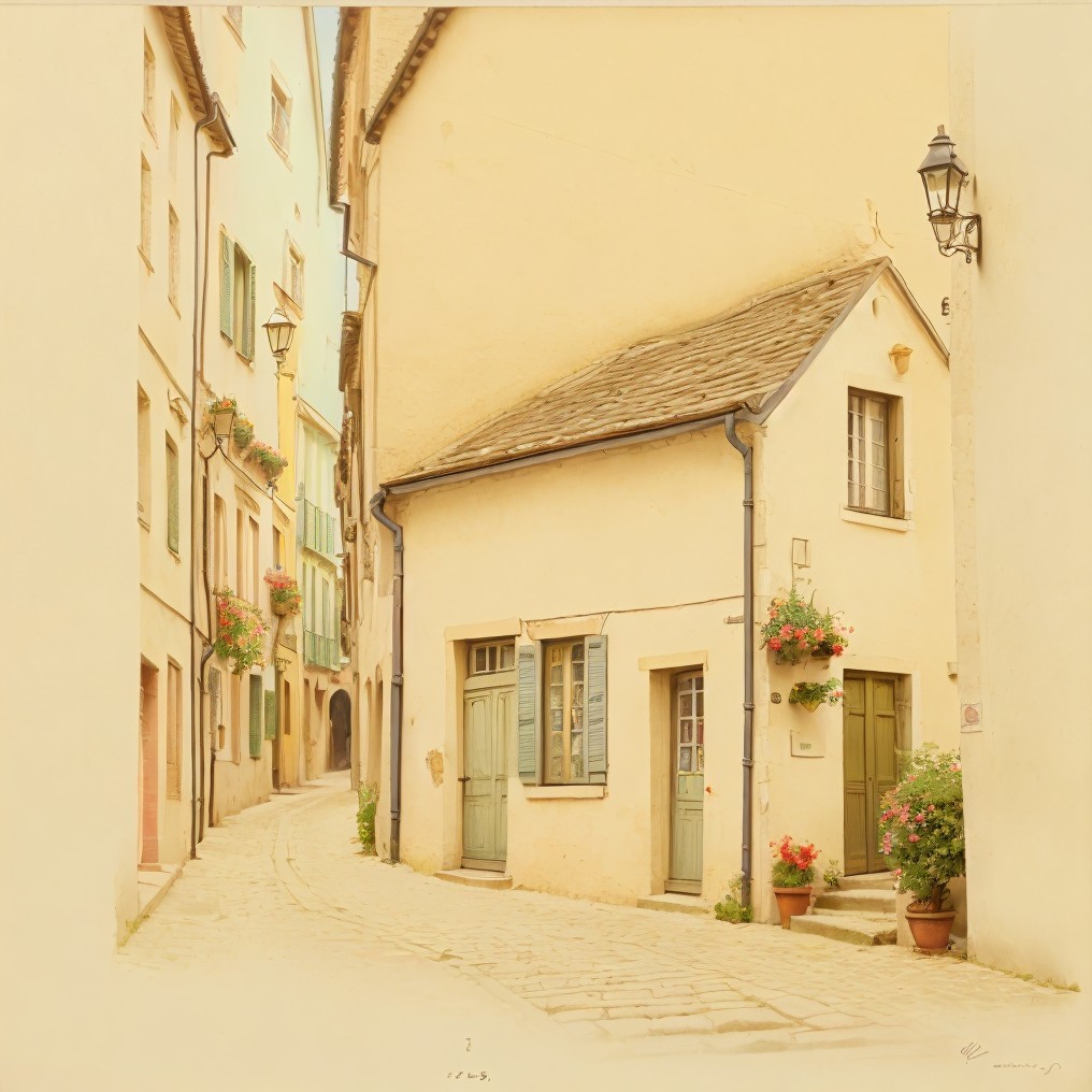 European Alley with Cobblestone Streets and Pastel-Colored Buildings