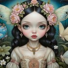 Prompt: happy girl, color single full frame integrated image, dry ink brush, style of Hundertwasser, figurative style of Paul Klee, style of Egon Schiele, style of Naoto Hattori, style of Rennie Macintosh, effusive, smooth lines, consistent, realism