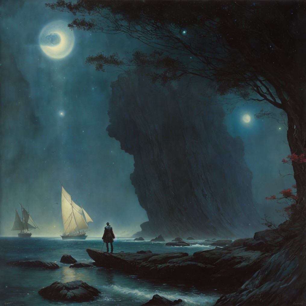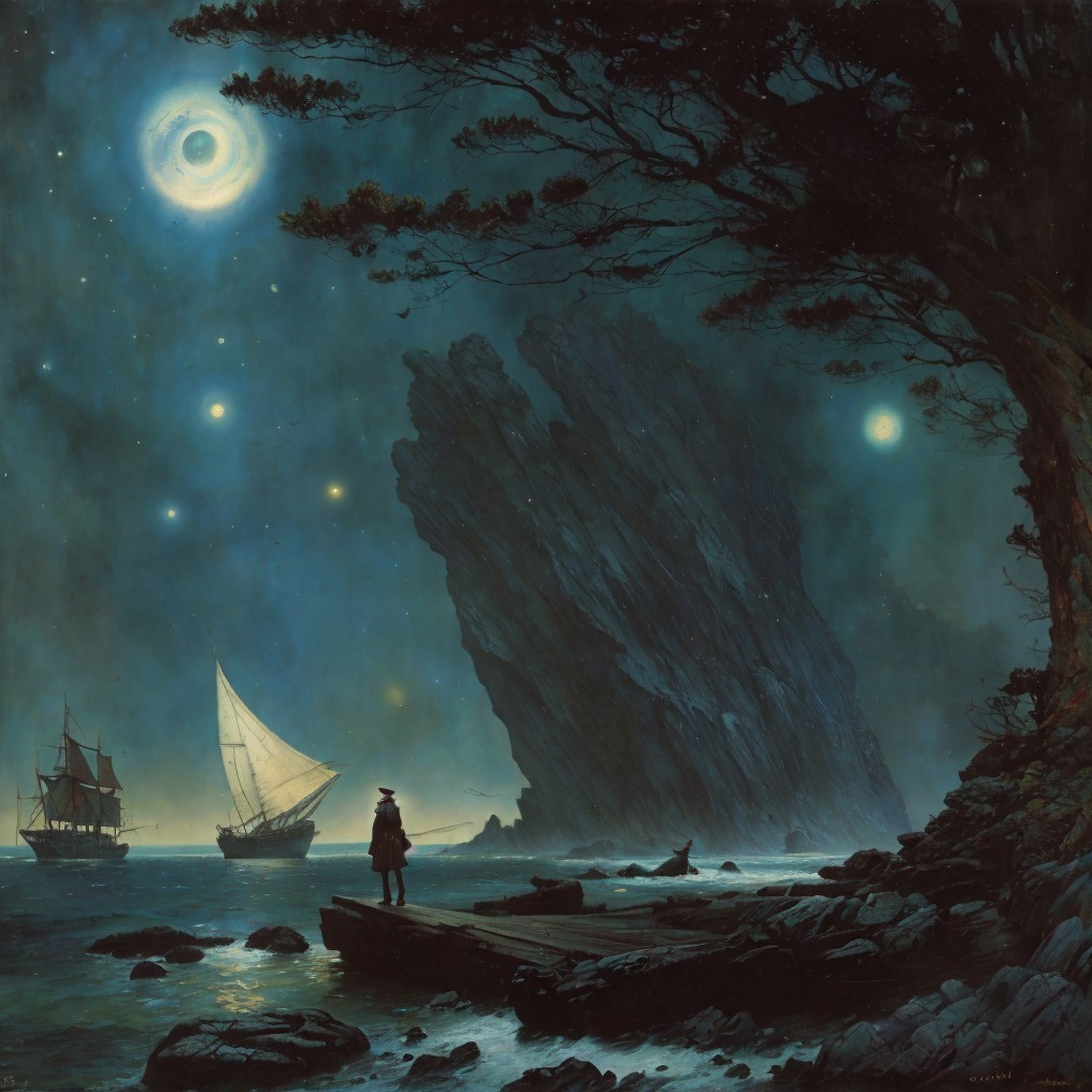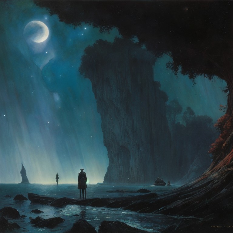 Prompt: the mystery of hollow bay: Enki Bilal, Wassily Kandinsky, Andy Kehoe, Alex Alemany and van Gogh,Jackson Pollock, Alphonse Mocha and Jeremy Mann, Meta, Arthur Rackham Jean-Baptiste Monge