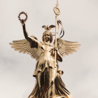 A muscular figure poses dramatically, holding two glowing spheres aloft. Draped in flowing fabric, the artwork captures a sense of power and grace, suggesting themes of light and balance.