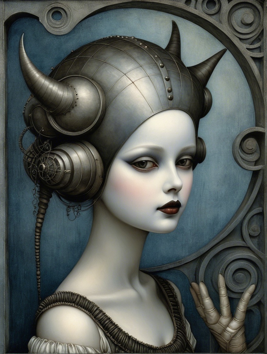 Close up, adorable H.R. Giger Pierrot creature in the labyrinth, by Catrin Welz-Stein, Michael Parkes