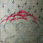 The image depicts a colorful, stylized mountain peak surrounded by fluffy clouds, set against a starry night sky. The vibrant colors create a dreamlike, whimsical atmosphere.