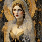 “angel of night, of history and death and of light”. Dark gothic gypsy sorcerer bat woman of the night, spider web veil, in the style of Wolfe Von Lenkiewicz ,style klimt e Van Gogh