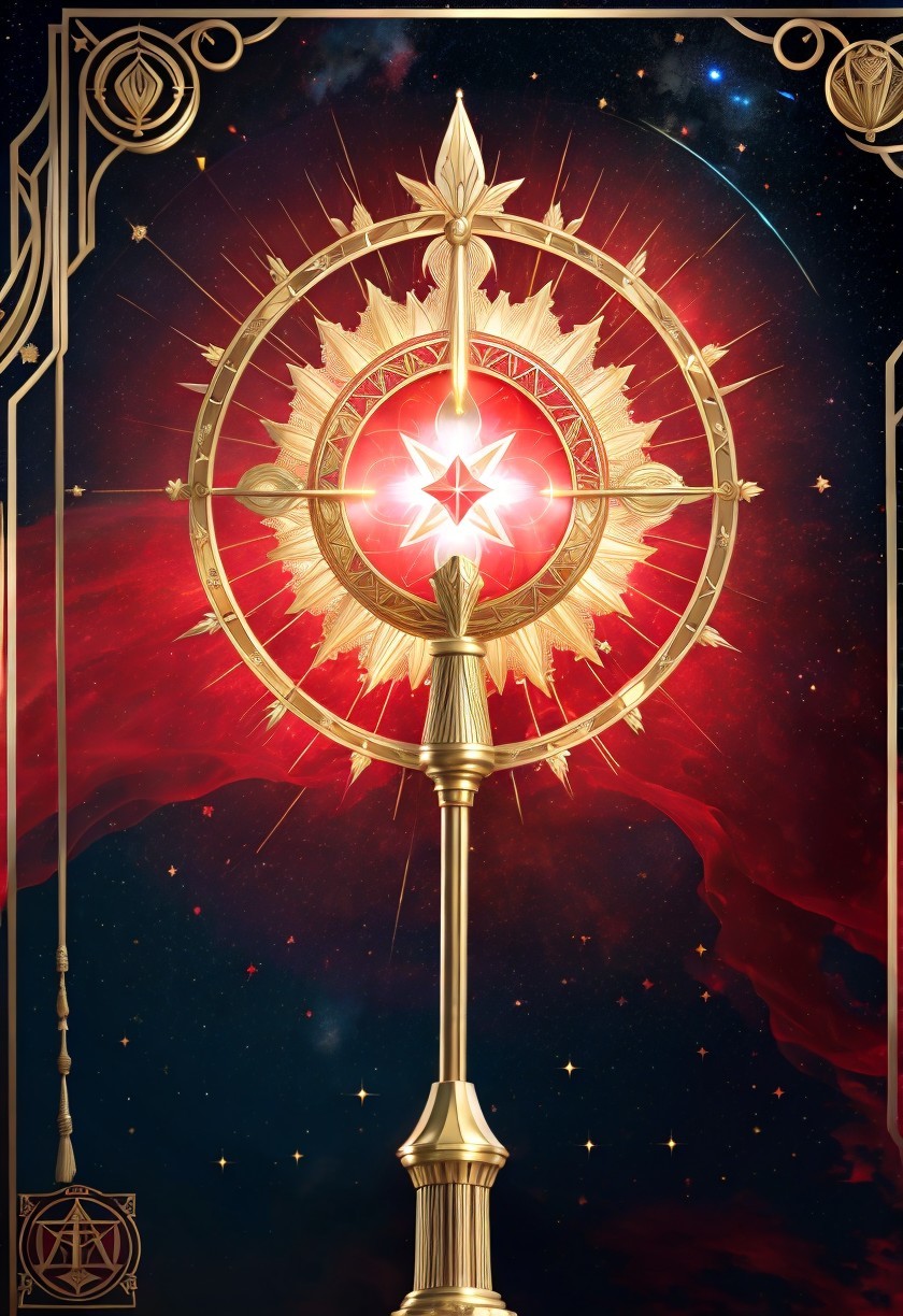 + Prompt:BEAUTIFUL PROMETHEA in BRASS and BRONZE ARMOR WITH RED TRIM AND FLOWING RED ROBES HOLDING A GLOWING STAFF TOPPED WITH A CADEUSUS FLAMING WITH HOLY FIRE, stars in the background, fantasy, Egyptian, GODDESS, ART, FIRE, WATER, ARIES, AQUARIUS, LANGUAGE, COMMUNICATION, BORDERS, INSPIRATION, MAGIC, FEMALE, POWER, STRONG ARMS, WARRIOR, THICK, SILVER HAIR