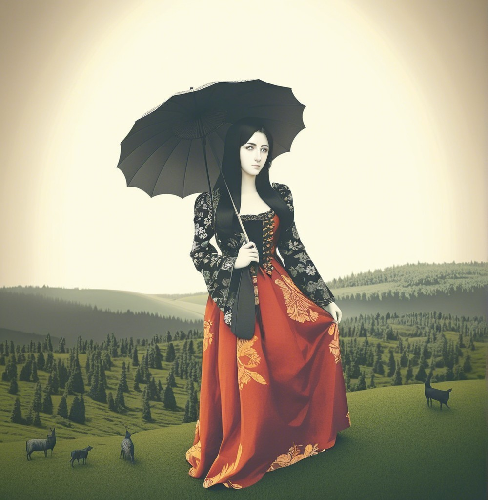Prompt: Intricate paper-cut effect, line-art, micro-pen lineage, vibrant color palette, whimsical storytelling, surreal elements, multi-layered eyes, iridescent and flowing oily line work for a psychosomatic surrealism style inspired by Gayane Khachaturian and Zio Ziegler with a pastel color palette reminiscent of Ernst Haeckel's work. Utilize pen and ink to create impossible light transitions, liminal, crackles, contraptions, satin umbrella, nature motifs, dreamlike atmosphere, intricate details, digital illustration, high contrast, modern yet timeless, intricate paper-cut effect, by Eiko Ojala, inspired by Warwick Goble's tints, August Macke's color shapes, Paul Klee's stylization, reminiscent of fine art history, line-art with zentangle influences, simple shapes with graceful curves, stylized portrait, styles by Eduardo Paolozzi and Tai-Shan Shierenberg and Renny Tait, linocut, plasticity 1.6, collagraphy, high plasticity, stylized portrait with a juvenile essence. whimsical watercolor and ink paint in tiny outlines, reminiscent of woodcut-inspired graphics, surreal fissured hues, artistic masterpiece. Maximalism, rule of thirds, ambient occlusion 1.3, parallax occlusion 1.3, raytraced shadows 1.3, dynamic lighting 1.3, lighting by Ed Paschke, dark fantasy meets surrealism, paper-cut technique, sculpted, flowing hair illusion, ethereal atmosphere, layers of fabric evoke a sense of calmness and harmony, dynamic lighting effects, Hues by Georgia O'Keeffe, intricate coloring, very smooth complexion, plasticity 1.2, Arcane GTNR style, custom_loss: edge, plasticity 1.7, complexion 1.1, only curves, zentangle method, dynamic lighting 1.7,