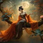 Elegant Women in Red Gowns in Dimly Lit Bar